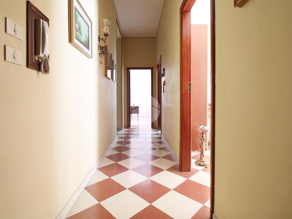 L'immobile si compone da un ingresso che sfocia ad un corridoio che conduce alla zona giorno composta da un ampio salone e da una cucina abitabile con balcone. Nella zona notte invece , trovano spazio un ampia camera da letto e una cameretta, il tutto servito da un bagno con vasca e da un ripostiglio. Al piano superiore vi è un terrazzo comune e una grande lavanderia anche quest'ultima di pertinenza comune. Completa l'immobile un ampio garage catastalmente accatastato con categoria C/3, di 60 mq, ideale per chi è alla ricerca di un ulteriore e comodo spazio.